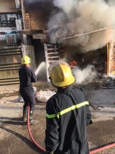 ١- مركز الشعلة وبإسناد مركز الغزالية يخمد حادث داخل مخزن للأدوات ألاحتياطيه و معرض للتكتك مع محل للنركيلة في الشارع العام قرب العلوة، سبب الحادث يقدر من قبل خبير الأدلة الجنائية.