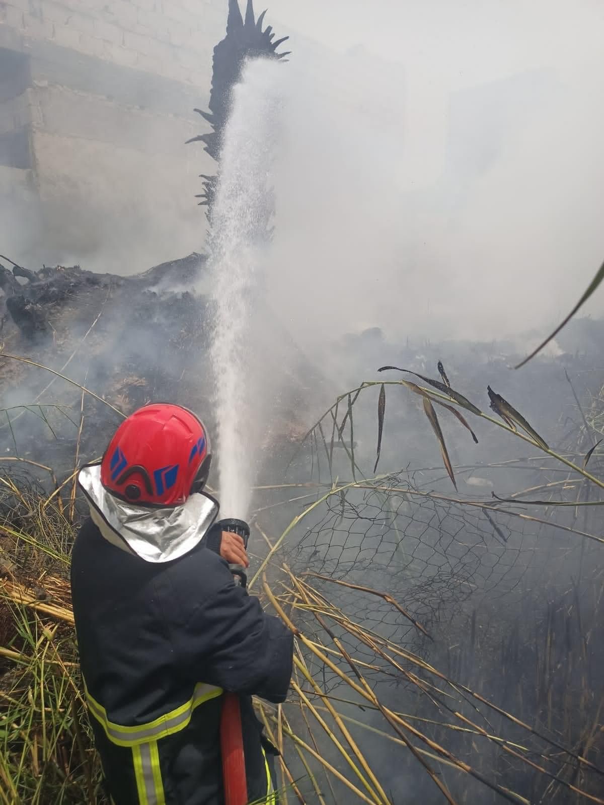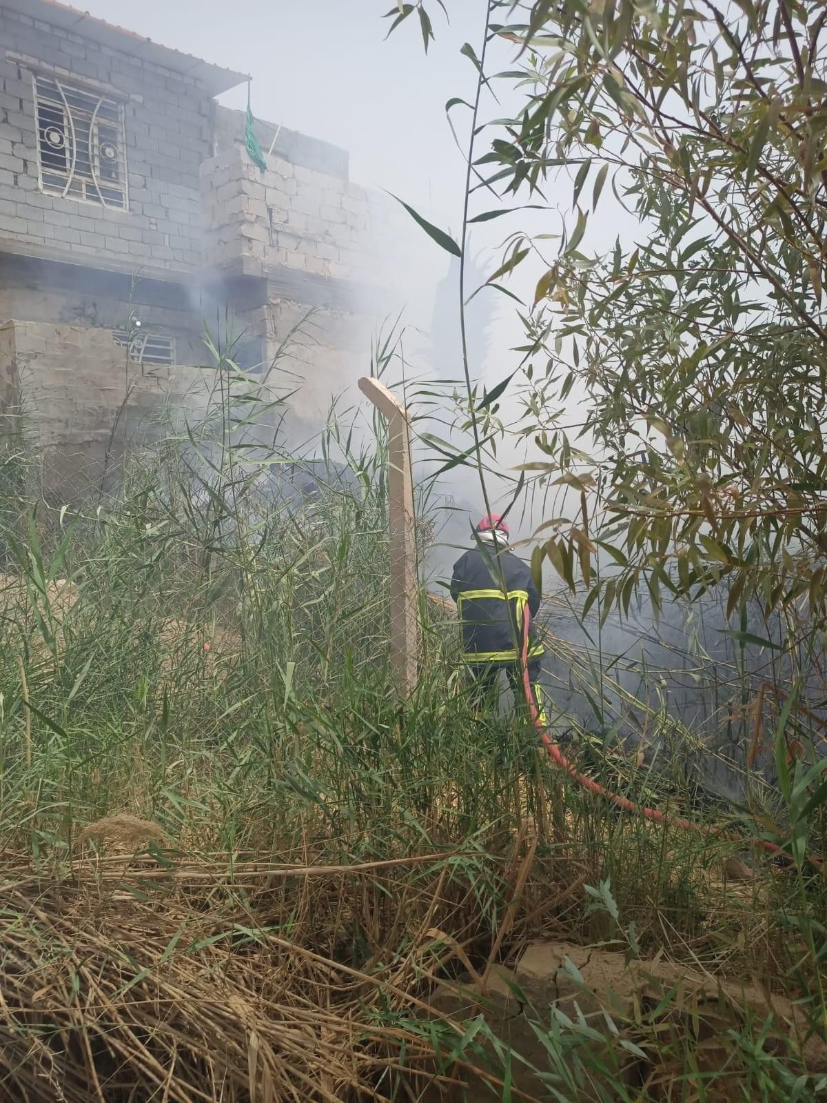 واضافت، ان”الفرق سيطرت على النيران المندلعة بهمة عالية وبوقت قياسي وتمنع توسعها وانتشارها إلى الدور السكنية المجاورة وبدون اي اضرار بشرية”.