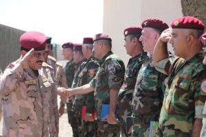 وذكرت القيادة في بيان تلقته الرشيد، أن “رئيس أركان العمليات المشتركة الفريق الركن حامد عبد المقصود يرافقة قائد القوات البرية الفريق الركن قاسم المحمدي وعدداً من القادة العسكريين وصلوا إلى أربيل”.