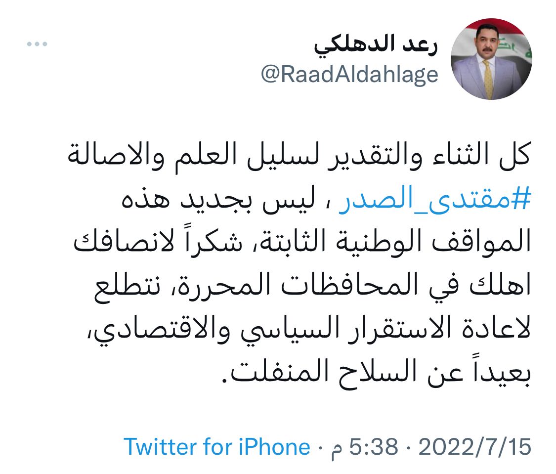سياسةالدهلكي للسيد الصدر: شكراً لانصافك اهلك في المحافظات المحررة قبل 3 سنوات 6 مشاهدات شارك الوسومالصدررعد الدهلكيقد يهمك أيضا أمن مقتل شاب برصاصة أطلقها منتسب أمني بالخطأ خلال "مشاجرة اعتيادية" في أبي غريب غربي بغداد قبل ساعتين 7 مشاهدات رياضة مدرب الأرجنتين معلقاً على قرعة المونديال: منتخب الجزائر قوي والأردن مجهول بالنسبة لي قبل ساعتين 14 مشاهدات محليات العراق يستقبل موجة أمطار غزيرة.. الأنواء تحذر من سيول وفيضانات في المناطق غير المخدومة اعتباراً من الغد قبل 3 ساعات 16 مشاهدات محليات المالية تنفي استقبال نائبة للتفاوض مع وزيرتها بشأن مستحقات المقاولين قبل 3 ساعات 10 مشاهدات عربي ودولي البيت الأبيض يحذر: أوروبا مهددة بـ"زوال الحضارة" خلال 20 عاماً قبل 3 ساعات 9 مشاهدات