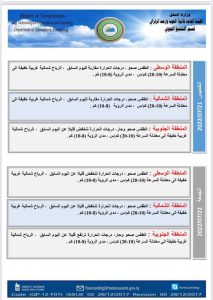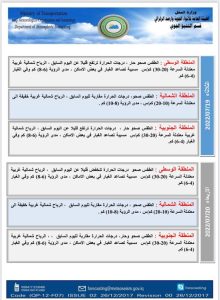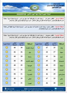 أعلنت هيئة الأنواء الجوية، اليوم الاثنين، عن حالة الطقس في البلاد للأسبوع الحالي، فيما توقعت انخفاضاً في درجات الحرارة بدءاً من الخميس.