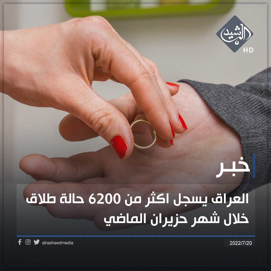 محلياتالعراق يسجل اكثر من ٦٢٠٠ حالة طلاق خلال شهر حزيران الماضي قبل 3 سنوات 12 مشاهدات شارك الوسومالطلاققد يهمك أيضا سياسة المجلس السياسي الوطني يعلن الاتفاق على آليات تسهل حسم اختيار رئيس مجلس النواب قبل 5 ساعات 10 مشاهدات الحكم الرابع الـVAR يتلاعب بدورينا .. تفاصيل صادمة في الحكم الرابع قبل 5 ساعات 10 مشاهدات عربي ودولي الحكومة الليبية تعلن مقتل رئيس الأركان محمد الحداد ومرافقيه اثر تحطم طائرتهم في أنقرة قبل 6 ساعات 19 مشاهدات عربي ودولي مقتل رئيس الأركان الليبي "محمد الحداد" ومرافقيه بتحطم طائرتهم أثناء عودتهم من أنقرة قبل 6 ساعات 16 مشاهدات عربي ودولي وسائل إعلام تركية: العثور على حطام طائرة رئيس الاركان الليبي التي سقطت بعد إقلاعها من أنقرة قبل 6 ساعات 9 مشاهدات
