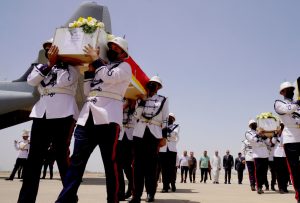 وذكر مكتب الكاظمي في بيان تلقته الرشيد، ان”الاخير تقدّم مراسم التشييع الرسمي للشهداء التي جرت في مطار بغداد الدولي، بحضور عدد من القيادات الأمنية والمسؤولين”.