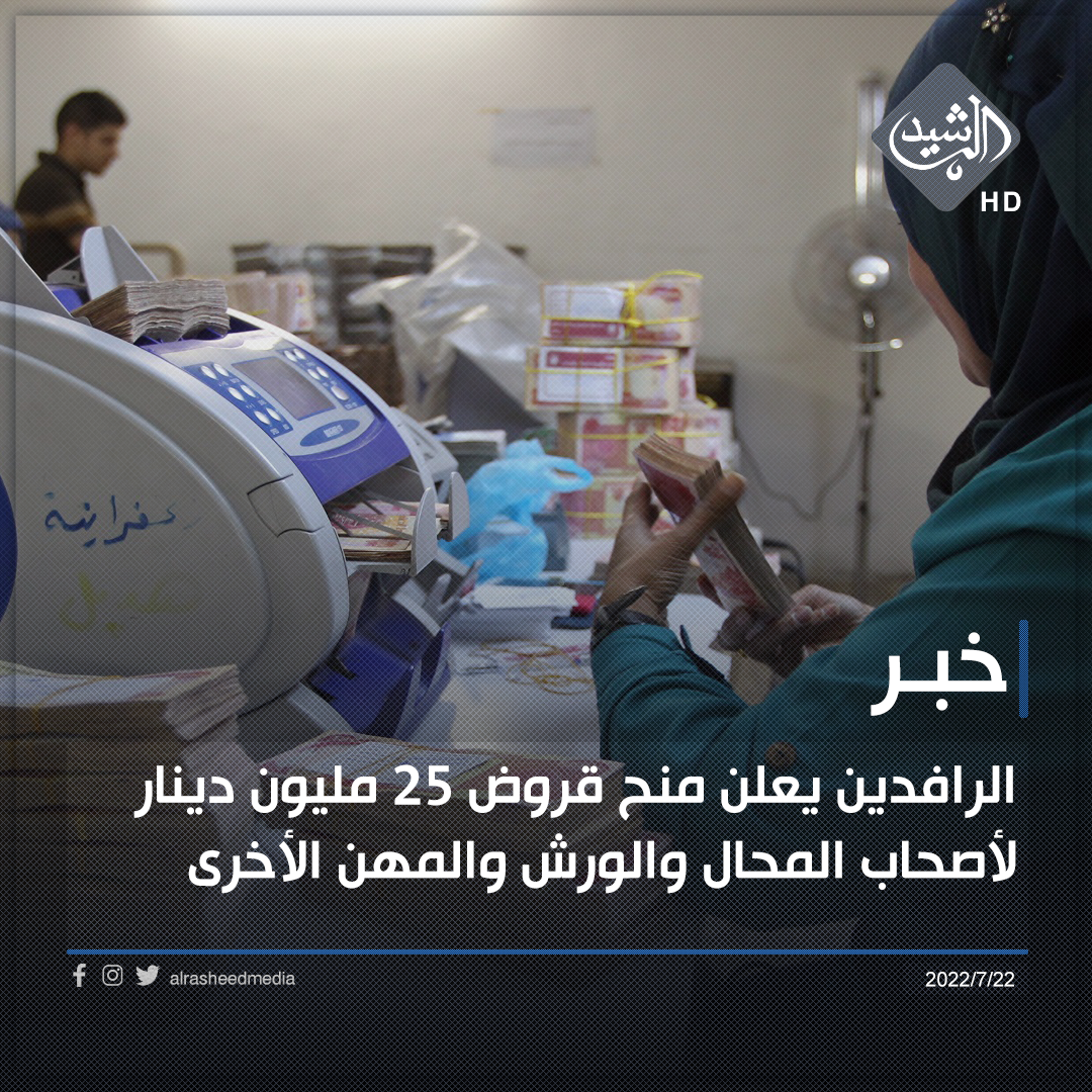 وذكر بيان للمصرف تلقته “الرشيد”، أن “المصرف قرر منح قروض 25 مليون دينار لأصحاب المحال والورش والمهن الأخرى”.