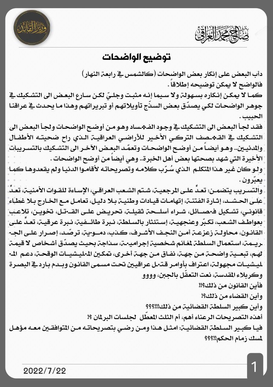 سياسةصالح محمد العراقي بشأن تسريبات المالكي: الى اين تريدون بالعراق وشعبه قبل 3 سنوات 3 مشاهدات شارك الوسومالصدرقد يهمك أيضا محليات الأنواء الجوية: ضباب كثيف وانعدام للرؤية فجر وصباح الخميس في مناطق واسعة من البلاد قبل 46 دقيقة 7 مشاهدات محليات محافظة النجف تعلن تعطيل دوام المدارس يوم غد الخميس قبل ساعة واحدة 7 مشاهدات عربي ودولي الولايات المتحدة تتوعد المحكمة الجنائية الدولية بعقوبات جديدة قبل ساعتين 6 مشاهدات الاخبار العاجلة تعطيل الدوام الرسمي في المثنى يوم غد الخميس بسبب الاحوال الجوية قبل ساعتين 9 مشاهدات أقتصاد ارتفاع جديد يطرأ على اسعار صرف الدولار عند الاغلاق قبل ساعتين 8 مشاهدات