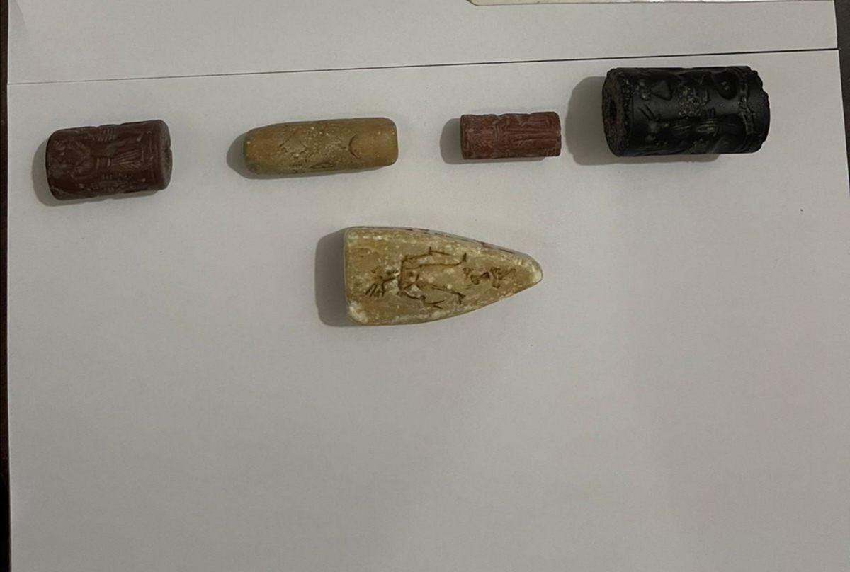 واضاف، انه” تم ضبط بحوزتهما اختام اثريه عدد(٥) مختلفة الانواع والاحجام وتم ضبط عجله نوع تيوتا كروان موديل ٢٠٠٦ وتم تسليم المتهمين اعلاه مع العجله والمواد بوصل استلام الى شعبة استخبارات الاعظمية بوصل استلام”.