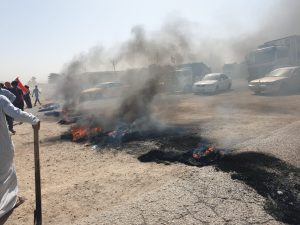 وقال مراسل الرشيد، ان”محتجين من العشائر قطعوا الطريق الرابط بين الشطرة والناصرية بالاطارات المحترقة”.