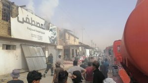 واضافت، ان”أربع فرق تمكنت من السيطرة على الحادث دون امتداده إلى المخازن القريبة”.