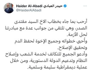 سياسةالعبادي يعلن ترحيبه بخطاب السيد الصدر قبل 3 سنوات 2 مشاهدات شارك الوسومالصدرحيدر العباديقد يهمك أيضا سياسة رئيس مجلس القضاء الأعلى يدعو القوى والشخصيات السياسية لإنجاز الاستحقاقات الدستورية في اختيار الرئاسات الثلاث قبل 22 دقيقة 3 مشاهدات عربي ودولي إعلام إيراني: احتجاز 18 من أفراد طاقم ناقلة أجنبية احتجزت في خليج عمان قبل 37 دقيقة 5 مشاهدات عربي ودولي حزب تركي يقدم مقترحاً يتضمن منح عفو مشروط لمقاتلي "العمال الكردستاني" قبل 55 دقيقة 8 مشاهدات عربي ودولي زيلينسكي: روسيا هاجمتنا بالصواريخ والمسيرات وحرمت الآلاف من الكهرباء قبل ساعة واحدة 7 مشاهدات سياسة غوتيريش يؤكد استمرار دعم المنظمة الدولية للعراق قبل ساعة واحدة 9 مشاهدات