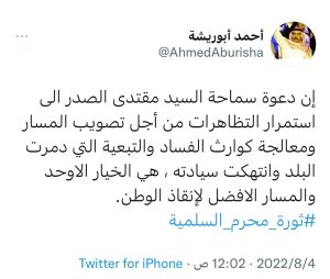 سياسةابو ريشة: دعوة السيد الصدر لاستمرار التظاهرات هي الخيار الاوحد والمسار الافضل لإنقاذ الوطن قبل 3 سنوات 2 مشاهدات شارك الوسوماحمد ابو ريشةقد يهمك أيضا سياسة العراق وباكستان يناقشان الارتقاء بواقع التبادل التجاري والسجناء والعمالة قبل 7 ساعات 10 مشاهدات مع ياسر عامر الفصائل تنزع سلاحها و”النجباء والكتائب” يرفضون!! قبل 8 ساعات 12 مشاهدات سياسة المجلس السياسي الوطني يقرر عقد اجتماع الثلاثاء المقبل لمواصلة النقاشات قبل 8 ساعات 16 مشاهدات سياسة المجلس السياسي الوطني يؤكد الالتزام بالتوقيتات الدستورية لجلسة البرلمان قبل 9 ساعات 14 مشاهدات عربي ودولي السويد.. حادثة تدنيس جديدة للمصحف في مسجد ستوكهولم تؤجج مشاعر المسلمين قبل 9 ساعات 9 مشاهدات