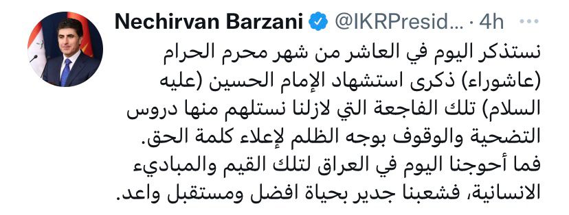 سياسةنيجرفان بارزاني بذكرى استشهاد الإمام الحسين (ع): ما أحوجنا لتلك القيم والمبادئ الإنسانية قبل 3 سنوات 6 مشاهدات شارك الوسومنيجرفان بارزانيقد يهمك أيضا عربي ودولي النيران تتصاعد من ميناء تيمريوك الروسي بعد هجوم أوكراني بالمسيرات قبل 17 دقيقة 3 مشاهدات سياسة رئاسة الجمهورية تنفي علمها أو مصادقتها على قرار "اعتبار أنصار الله وحزب الله اللبناني" جماعات إرهابية قبل 33 دقيقة 4 مشاهدات عربي ودولي موسكو: قد يتم عقد لقاء بين بوتين وترامب في القريب العاجل قبل ساعة واحدة 6 مشاهدات رياضة "توالي الأزمات".. ليفربول يوجه ضربة قوية لمحمد صلاح ويقرر بيعه قبل ساعتين 9 مشاهدات عربي ودولي الرئيس اللبناني يطالب مجلس الأمن بالضغط على إسرائيل لتطبيق وقف إطلاق النار قبل ساعتين 8 مشاهدات