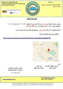 اعلنت وزارة النقل العراقية، اليوم الجمعة، تسجيل مراصدها الزلزالية في الهيئة العامة للانواء الجوية والرصد الزلزالي حدوث هزة أرضية في محافظة السليمانية.