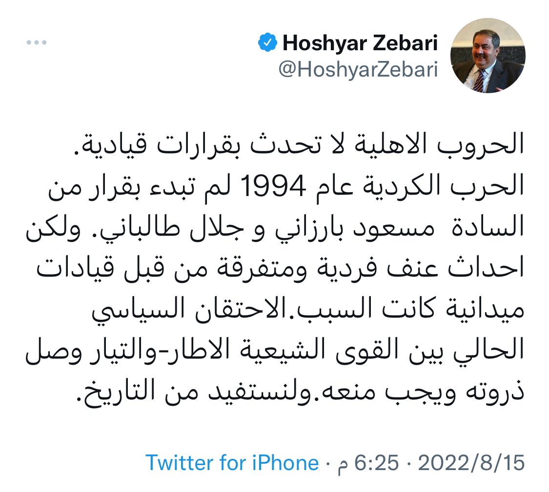 سياسةزيباري: الاحتقان السياسي الحالي بين الاطار والتيار وصل ذروته ويجب منعه قبل 3 سنوات 3 مشاهدات شارك الوسومهوشيار زيباريقد يهمك أيضا أمن السفير الروسي لدى بغداد يؤكد مقتل وإصابة مقاتلين عراقيين في الحرب الروسية الأوكرانية قبل 6 ساعات 14 مشاهدات سياسة الجمعية العامة للأمم المتحدة تنتخب الرئيس العراقي السابق برهم صالح لمنصب المفوض السامي لشؤون اللاجئين قبل 6 ساعات 9 مشاهدات أمن الإعلام الأمني تنوه: تنفيذ تمرين مشترك لفحص كفاءة وجاهزية الدفاعات الجوية صباح الغد قبل 7 ساعات 12 مشاهدات رياضة رسميًا.. منتخبا السعودية والإمارات يتقاسمان برونزية كأس العرب بقرار من الفيفا قبل 7 ساعات 13 مشاهدات محليات العمل: كشف أكثر من 380 ألف أسرة متجاوزة على إعانة الحماية الاجتماعية بينهم ميسورو الحال قبل 7 ساعات 17 مشاهدات