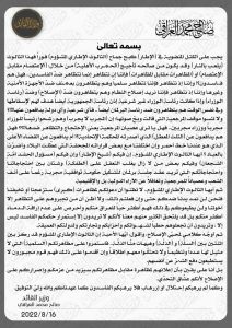 وجه صالح محمد العراقي الملقب بوزير زعيم التيار الصدري السيد مقتدى الصدر، رسالة الى كتل الإطار التنسيقي.
