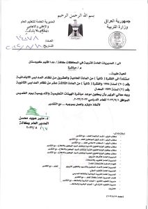 وذكرت الوزارة في بيان تلقته الرشيد، أن”المديرية العامة للتعليم العام والأهلي والأجنبي وجهت المديريات العامة كافة / عدا اقليم كردستان باعتماد يوم الخميس الموافق الـ1 من أيلول القادم