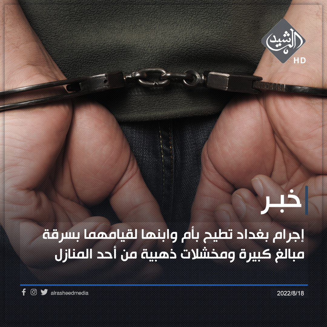 أعلنت مديرية مكافحة الإجرام، القاء القبض على ام وابنها لقيامهما بسرقة ١٧ ألف دولار و ٣٦ مليون دينار مع مخشلات ذهبية في بغداد.