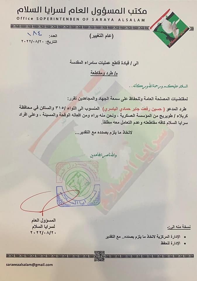 سياسةبالوثيقة.. سرايا السلام تعلن البراءة من احد عناصرها وتدعو لمقاطعته قبل 3 سنوات 7 مشاهدات شارك الوسومسرايا السلامقد يهمك أيضا عربي ودولي ترامب يعلن تصنيف مادة "الفنتانيل" المخدرة سلاح دمار شامل قبل 14 دقيقة 5 مشاهدات محليات عمليات بغداد: نقترب من فتح جميع الطرق بعد إزالة الكتل الكونكريتية قبل 41 دقيقة 5 مشاهدات محليات طقس العراق.. أمطار رعدية وتصاعد للغبار خلال الأيام المقبلة قبل ساعة واحدة 10 مشاهدات أقتصاد النفط يتراجع بفعل محادثات أوكرانيا وبيانات ضعيفة من الصين قبل ساعتين 6 مشاهدات رياضة المنتخب الاردني يهزم نظيره السعودي ويبلغ نهائي كأس العرب قبل 11 ساعة 15 مشاهدات