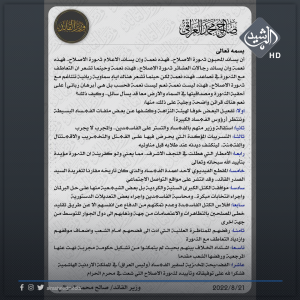 وقال العراقي في بيان تلقته الرشيد، ما نصه ادناه: