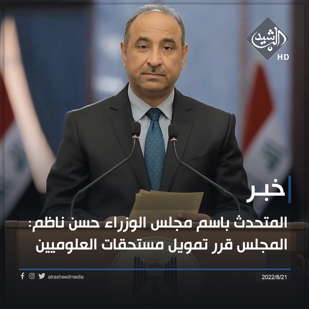 وقال ناظم في المؤتمر الصحفي الأسبوعي لمجلس الوزراء وحضرته الرشيد، إن “مجلس الوزراء قرر خلال جلسته التي عقدت اليوم، تمويل مستحقات العلوميين”، مبيناً، أن “المجلس استضاف وكيل وزارة المالية طيف سامي لمناقشة الحلول المستقبلية”.
