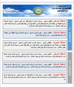الانواء الجوية: امطار خفيفة ومتوسطة مع تصاعد للغبار خلال الايام المقبلة