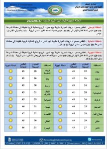 أعلنت هيئة الأنواء الجوية، اليوم الجمعة، عن حالة الطقس في العراق خلال الأيام الاخيرة من شهر آب الحالي، فيما توقعت ارتفاعاً في درجات الحرارة.