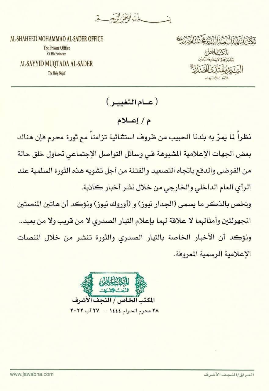 سياسةمكتب الصدر ينفي صلة قناتين على التليغرام بالتيار الصدري قبل 3 سنوات 5 مشاهدات شارك مكتب الصدر ينفي ارتباط “الجدار نيوز” وأوروك نيوز” بالتيار الصدري الوسومالتيار الصدريالصدرقد يهمك أيضا عربي ودولي ترامب: لدينا دعم كبير من القادة الأوروبيين من أجل إنهاء الحرب في أوكرانيا قبل 4 ساعات 9 مشاهدات عربي ودولي ترامب: قريبون من إنهاء الحرب في أوكرانيا وعلينا جمع موسكو وكييف على رأي واحد قبل 5 ساعات 8 مشاهدات رياضة المنتخب الاردني يهزم نظيره السعودي ويبلغ نهائي كأس العرب قبل 5 ساعات 13 مشاهدات مع ياسر عامر المكون السني… حاضر في السباق وغائب عن خط النهاية قبل 6 ساعات 9 مشاهدات سياسة وزير الخارجية والقائم بالاعمال الامريكي يؤكدان ضرورة التهدئة بالمنطقة وخفض التوترات قبل 6 ساعات 9 مشاهدات