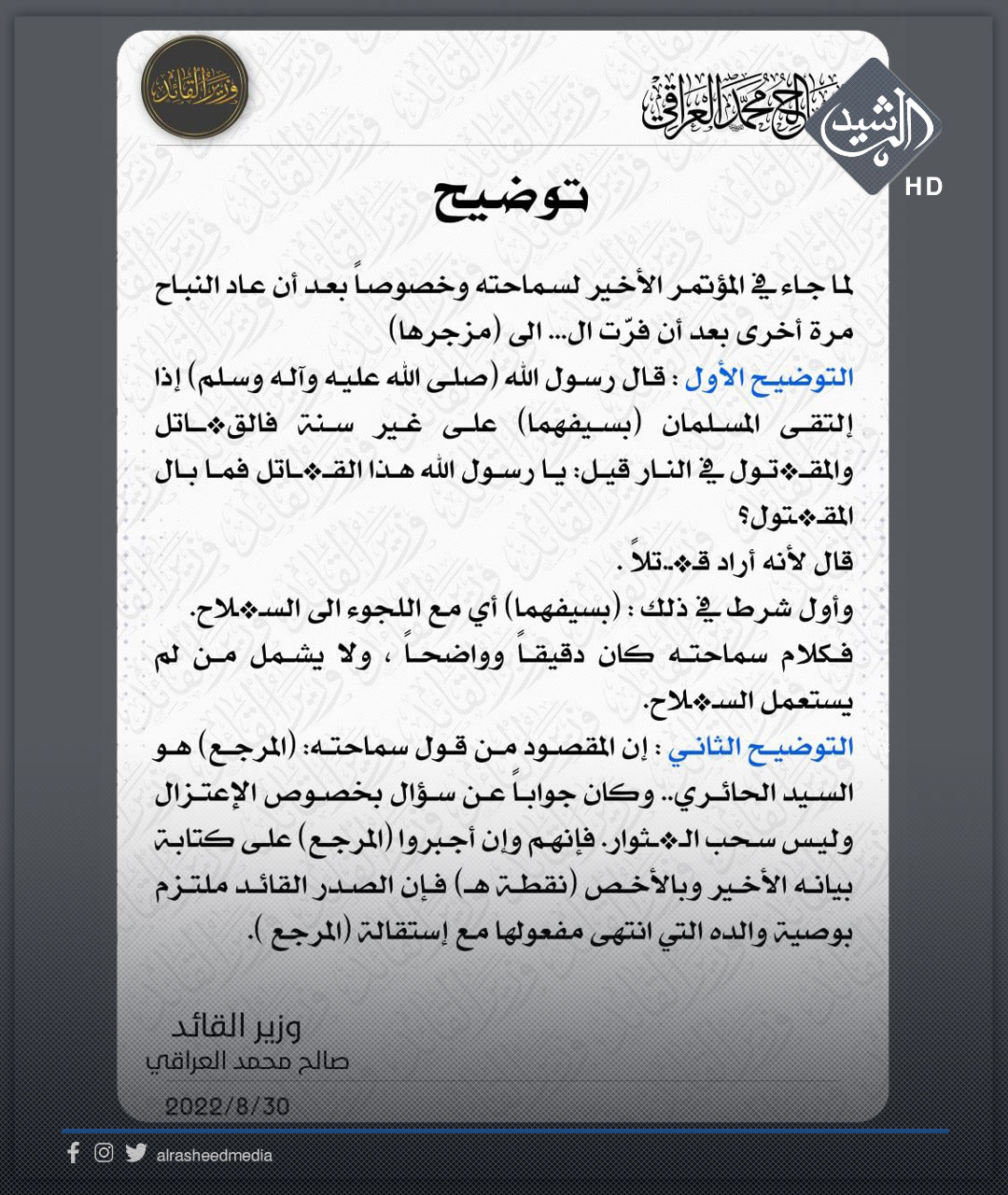 سياسةوزيره: السيد الصدر يوضح سبب قول الأخير “القاتل والمقتول بالنار” قبل 3 سنوات 3 مشاهدات شارك السيد مقتدى الصدر الوسومالصدرقد يهمك أيضا أمن الاستخبارات العسكرية تطيح بـ18 متهماً بقضايا قانونية مختلفة في أربع محافظات قبل 12 دقيقة 3 مشاهدات محليات القضاء يصدر إحصائية بحالات الزواج والطلاق خلال شهر تشرين الثاني الماضي قبل 20 دقيقة 4 مشاهدات ثقافة وفن بطلة فيلم "اللي بالي بالك".. وفاة الفنانة المصرية نيفين مندور إثر حريق بمنزلها قبل 39 دقيقة 6 مشاهدات أمن الداخلية: انخفاض الجرائم الإرهابية بنسبة 88% والدكات العشائرية بنسبة 92 في المئة قبل 41 دقيقة 5 مشاهدات أقتصاد انخفاض اسعار صرف الدولار في البورصة مع بدء التداول قبل ساعة واحدة 4 مشاهدات