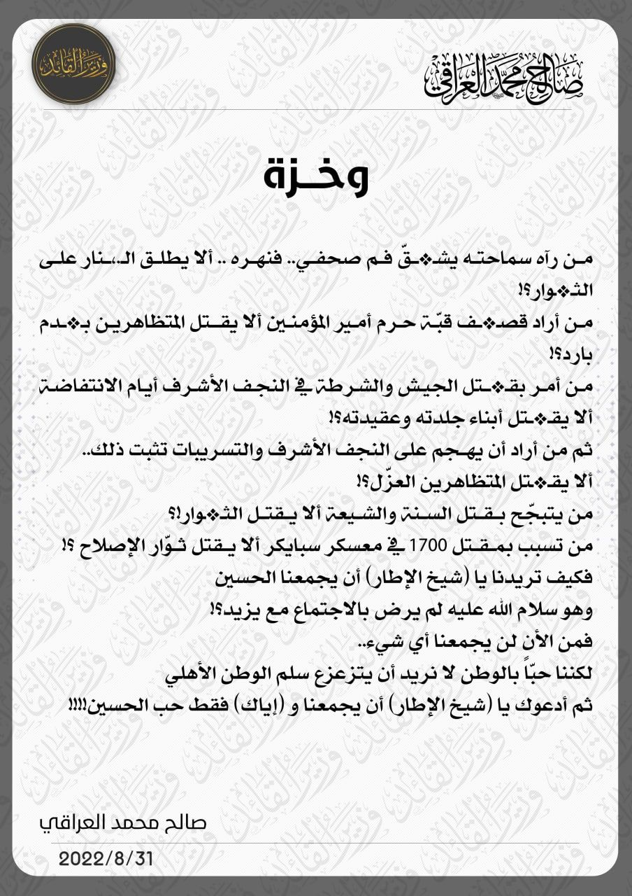 من أراد أن يهـ*ـجم على النجف الأشرف والتسريبات تثبت ذلك.. ألا يقـ**ـتل المتظاهرين العزّل؟!