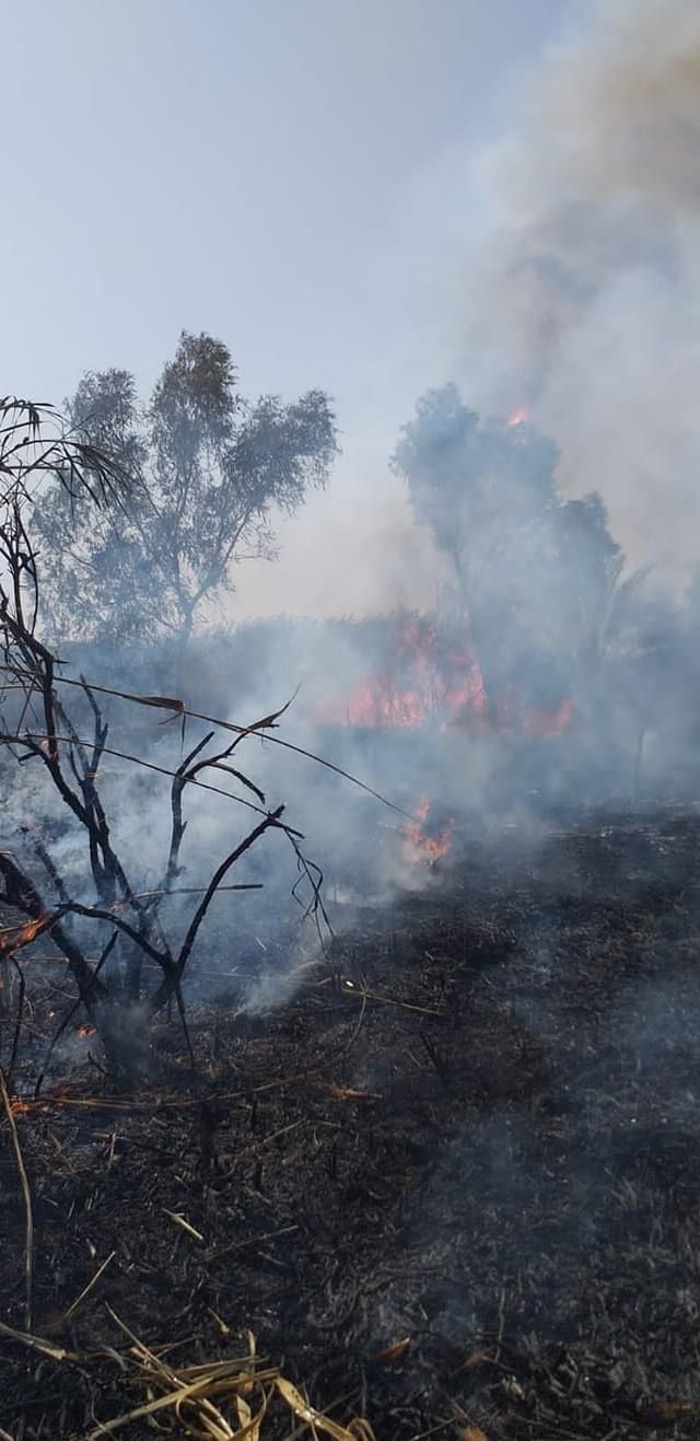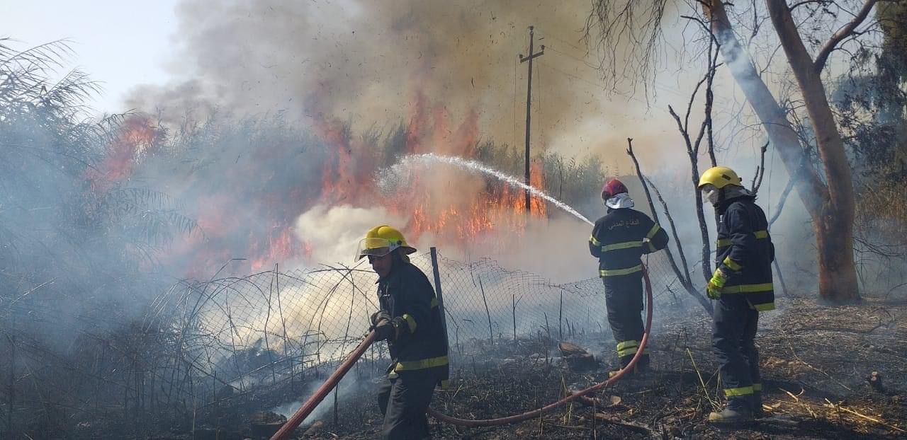 بالصور.. إخماد حريق اندلع بمناطق زراعية نتيجة عبث الأطفال في صلاح الدين