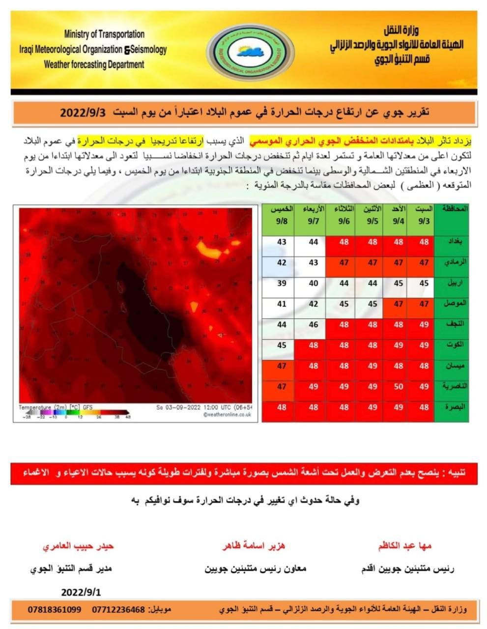 محلياتالانواء الجوية: العراق يتعرض إلى موجة حر بدءاً من السبت المقبل قبل 3 سنوات 6 مشاهدات شارك الوسومارتفاع الحرارةالانواء الجويةالطقسالعراققد يهمك أيضا عربي ودولي تفاصيل جديدة.. غارة أميركية تقتل عميلا سرياً في سوريا بدل قيادي داعشي قبل 10 دقائق 2 مشاهدات سياسة المفوضية تحدّد آلية منح مقعد المرشح المستبعد: يحل محله أعلى الخاسرين من نفس الكتلة قبل 32 دقيقة 2 مشاهدات عربي ودولي الأمم المتحدة: عودة أكثر من 378 ألف لاجئ سوري من لبنان إلى بلادهم قبل 35 دقيقة 2 مشاهدات رياضة إعلان حرب.. ريال مدريد يجهز تقريرًا للفيفا حول قضية نيجريرا قبل ساعة واحدة 8 مشاهدات عربي ودولي الأردن.. سيناريو حل البرلمان وتعديل الدستور يعود للواجهة قبل ساعة واحدة 7 مشاهدات