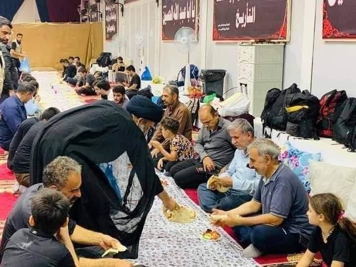 وظهر السيد الصدر يقدم الخدمة الحسينية لزوار الاربعينية في مصيف آل الصدر في الحنانة.