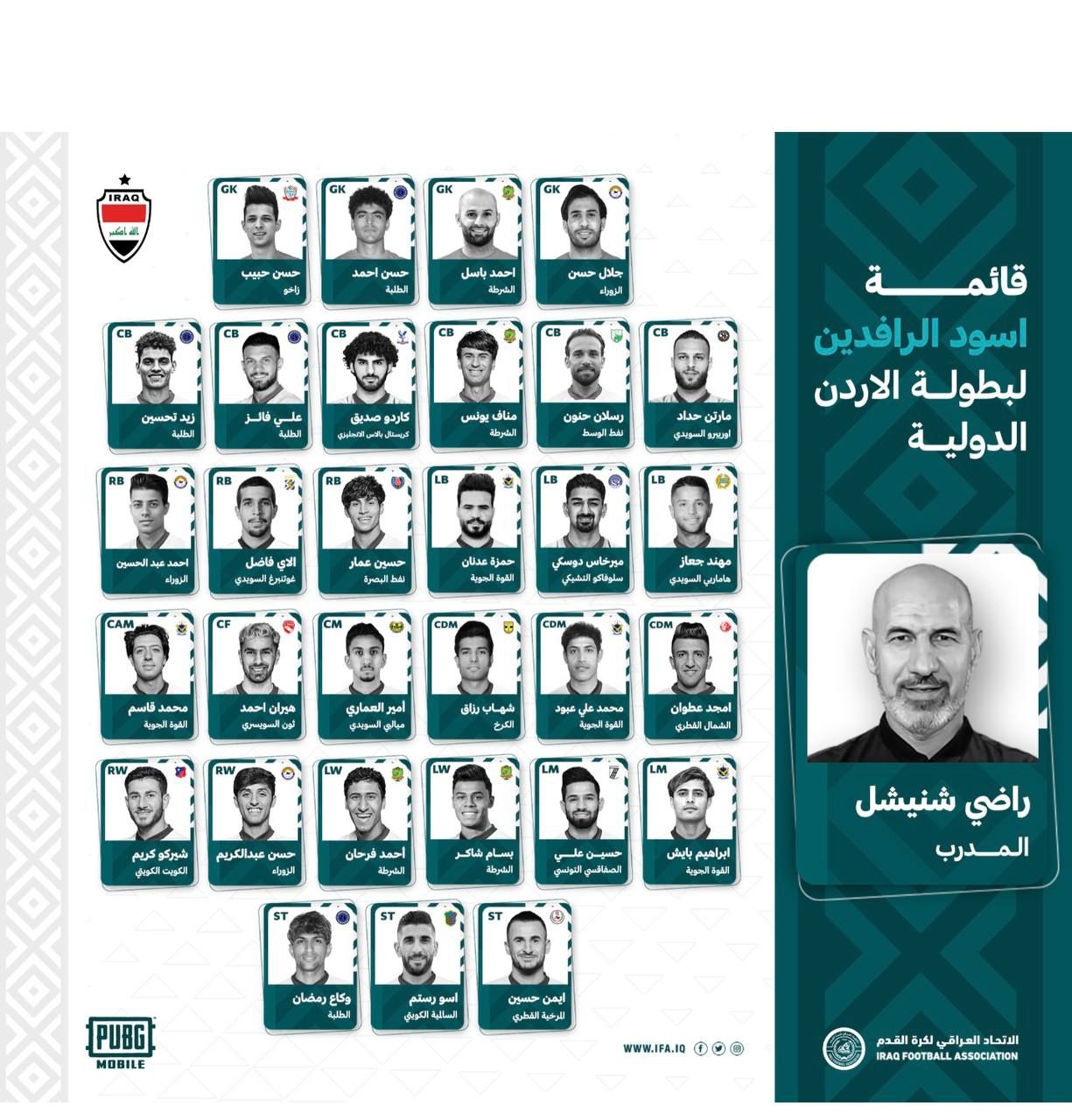 علنَ الجهازُ الفنيّ للمنتخبِ الوطنيّ لكرةِ القدم قائمةَ اللاعبين المُستدعاة لبُطولةِ الأردن الدوليّة، وذلك أثناء المؤتمرِ الصحفي الذي عقدَ اليوم في مقرّ الاتحادِ العراقيّ لكرةِ القدم.