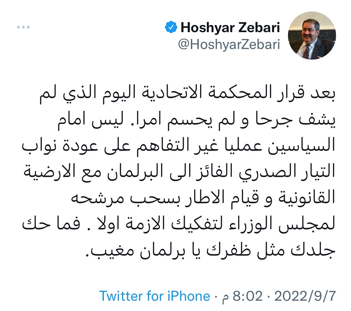 الاخبار العاجلةزيباري بعد قرار المحكمة الاتحادية: ليس امام السياسين غير التفاهم على عودة نواب التيار الصدري قبل 3 سنوات 3 مشاهدات شارك الوسومهوشيار زيباريقد يهمك أيضا أمن وزير الداخلية يعلن التعاقد مع شركة كبرى لتوريد رادارات حديثة للطرق قبل 11 دقيقة 2 مشاهدات محليات نقيب أطباء أسنان العراق يدعو إلى تعيين خريجي كليات طب الأسنان ويؤكد ضرورة زيادة معدل القبول بالكليات الاهلية قبل 52 دقيقة 4 مشاهدات الاخبار العاجلة ارتفاع أسعار الصرف في الأسواق المحلية: 143500 دينار مقابل كل 100 دولار قبل ساعة واحدة 6 مشاهدات أمن القضاء يسترد ملياري دينار عن جريمة احتيال مالي قبل ساعتين 6 مشاهدات أقتصاد مالية الإقليم: إيداع 120 مليار دينار من الإيرادات غير النفطية بحساب المالية الاتحادية قبل ساعتين 7 مشاهدات