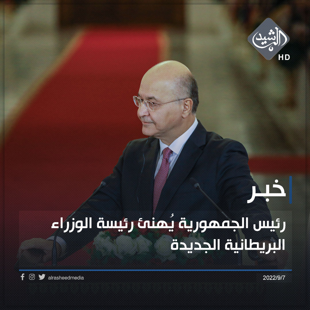 هنأ رئيس الجمهورية برهم صالح، اليوم الاربعاء، رئيسة الوزراء البريطانية الجديدة ليزا تراس