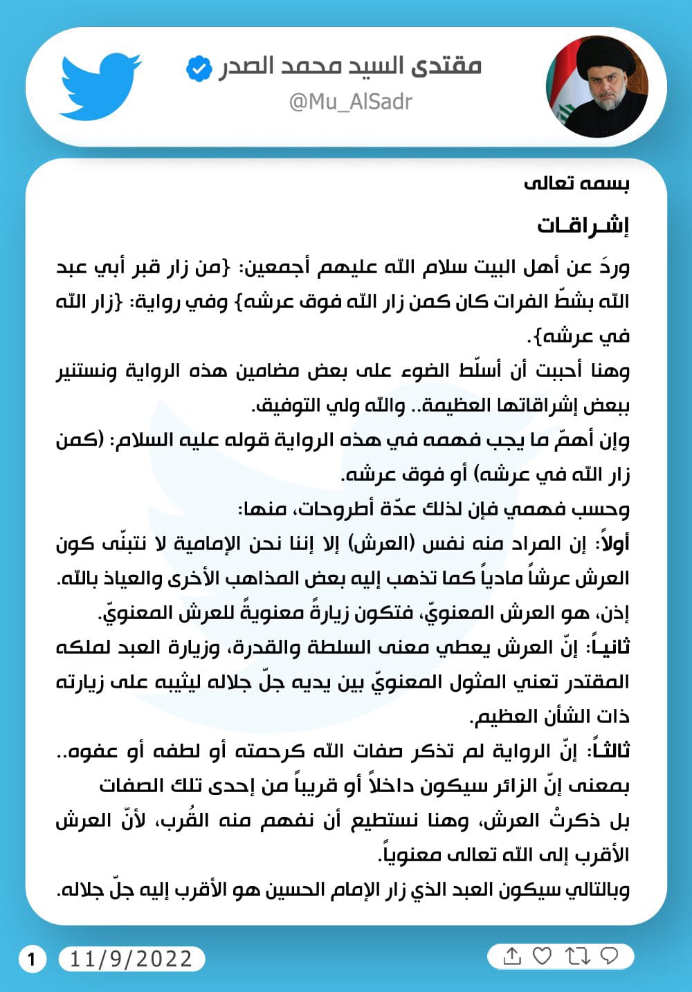 سياسةتغريدة جديدة للسيد الصدر قبل 3 سنوات 3 مشاهدات شارك الوسومالصدرقد يهمك أيضا محليات اخماد حريق بناية تجارية في منطقة الاعظمية قبل 10 دقائق 1 مشاهدة محليات اندلاع حريق داخل بناية متخذة كقاعة للاعراس في ساحة عنتر بمنطقة الاعظمية قبل ساعة واحدة 13 مشاهدات ثقافة وفن بعد مصرعها بحريق في منزلها.. مساعدة الفنانة "نيفين مندور" تزعم مقتلها وتطالب بالتحقيق قبل 3 ساعات 9 مشاهدات أمن احباط محاولة هروب سجين وسط العاصمة بغداد قبل 3 ساعات 10 مشاهدات أمن الاستخبارات العسكرية تطيح بـ18 متهماً بقضايا قانونية مختلفة في أربع محافظات قبل 4 ساعات 9 مشاهدات