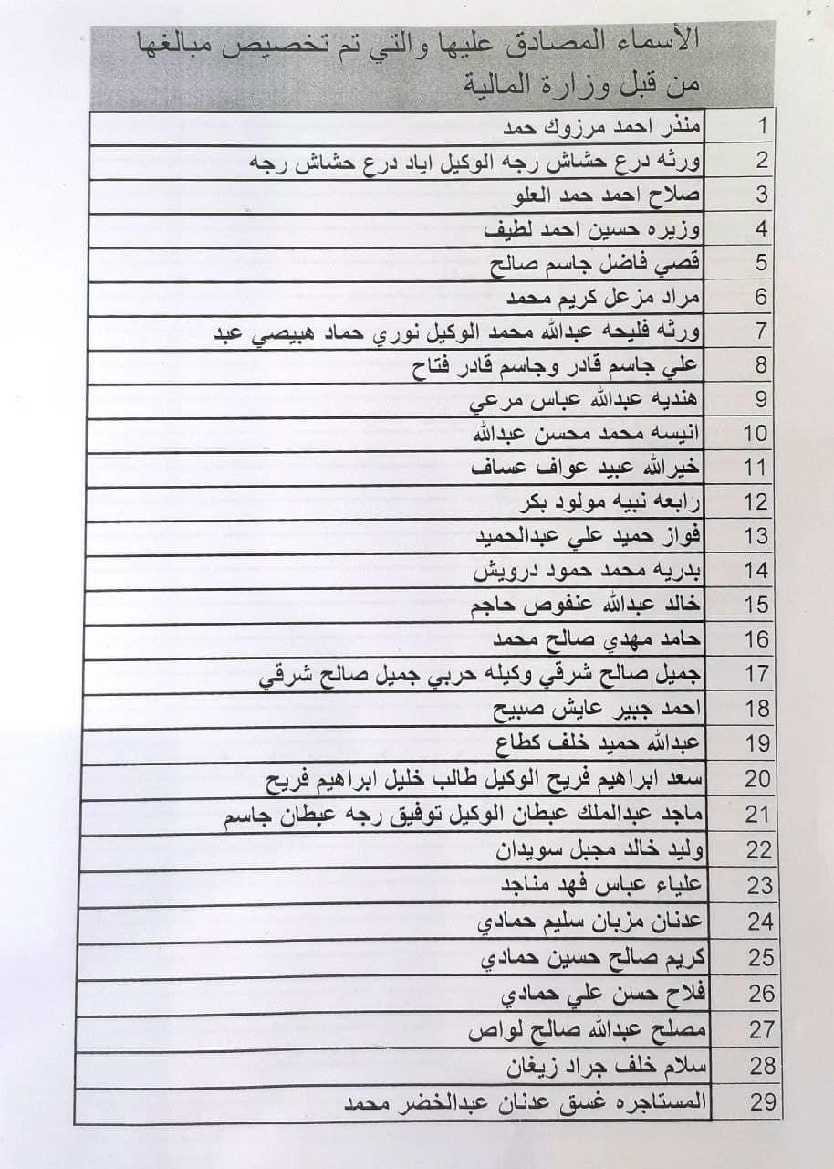 واضافت، ان “وزارة المالية خصصت المبالغ النقدية لأغراض الصرف وستوزع الصكوك هذا الاسبوع، عبر الوحدات الادارية في الاقضية”.