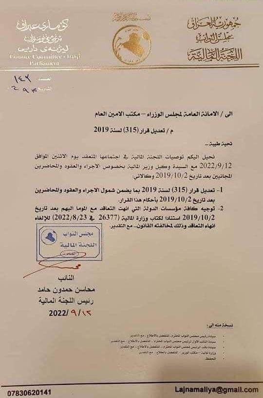 محلياتبالوثيقة.. المالية النيابية تخاطب أمانة مجلس الوزراء لتعديل قرار 315 قبل 3 سنوات 25 مشاهدات شارك الوسوموزارة الماليةقد يهمك أيضا الحكم الرابع الـVAR يتلاعب بدورينا .. تفاصيل صادمة في الحكم الرابع قبل 16 دقيقة 4 مشاهدات عربي ودولي الحكومة الليبية تعلن مقتل رئيس الأركان محمد الحداد ومرافقيه اثر تحطم طائرتهم في أنقرة قبل 21 دقيقة 11 مشاهدات عربي ودولي مقتل رئيس الأركان الليبي "محمد الحداد" ومرافقيه بتحطم طائرتهم أثناء عودتهم من أنقرة قبل 23 دقيقة 12 مشاهدات عربي ودولي وسائل إعلام تركية: العثور على حطام طائرة رئيس الاركان الليبي التي سقطت بعد إقلاعها من أنقرة قبل 27 دقيقة 6 مشاهدات سياسة المجلس السياسي الوطني يعقد اجتماعًا لحسم تسمية مرشح رئاسة البرلمان قبل 57 دقيقة 5 مشاهدات