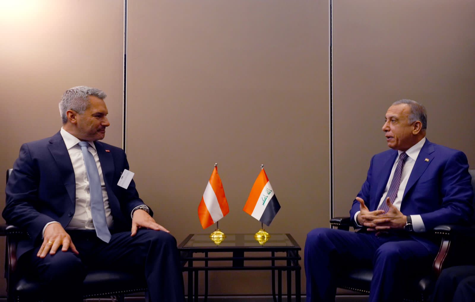 التقى رئيس مجلس الوزراء مصطفى الكاظمي، اليوم الثلاثاء، مستشار جمهورية النمسا كارل نيهامر، وذلك على هامش المشاركة في أعمال الجمعية العامة للأمم المتحدة في نيويورك.
