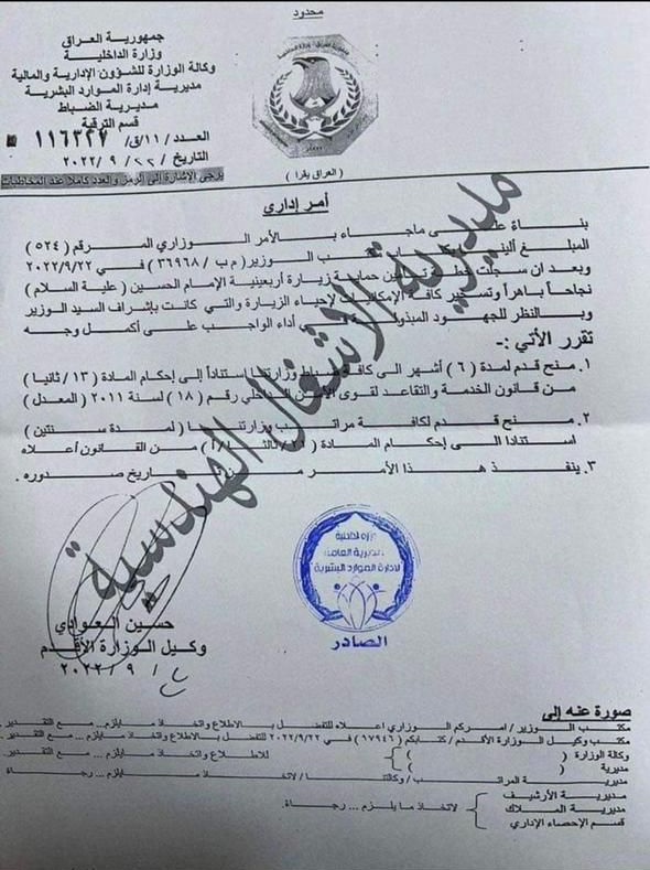 أمنبالوثيقة .. الرشيد تنشر الامر الوزاري الخاص بقدم منتسبي الداخلية قبل 3 سنوات 9 مشاهدات شارك وزارة الداخلية العراقية الوسوموزارة الداخلية العراقيةقد يهمك أيضا أقتصاد انخفاض اسعار صرف الدولار مقابل الدينار العراقي مع الاغلاق قبل 11 دقيقة 1 مشاهدة سياسة البرلمان: عامر الفائز سيترأس الجلسة الأولى وشكلنا لجنة تحضيرية قبل 47 دقيقة 5 مشاهدات رياضة بعد أزمة التصريحات.. ليفربول يغازل صلاح بفيديو مدته 52 دقيقة قبل 52 دقيقة 5 مشاهدات عربي ودولي بعد ظهور زيلينسكي فيها قبل أيام.. روسيا تعلن سيطرتها على كوبيانسك الأوكرانية قبل ساعة واحدة 5 مشاهدات عربي ودولي اتفاق غزة.. حماس تدعو واشنطن إلى "تفاوض مباشر" وتعرض هدنة "طويلة الأمد" مع إسرائيل قبل ساعة واحدة 8 مشاهدات