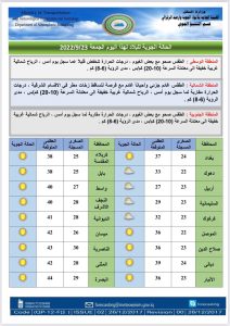 اعلنت الهيئة العامة للانواء الجوية، اليوم الجمعة، حالة الطقس في البلاد خلال الايام المقبلة وكمية الامطار المتساقطة في ال24 ساعة الماضية، فيما اشارت الى تصاعد للغبار وارتفاع جديد بدرجات الحرارة.