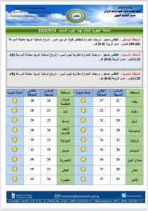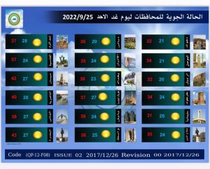 أعلنت هيئة الانواء الجوية، حالة طقس العراق خلال الأيام المقبلة، فيما اشارت الى تصاعد للغبار وانخفاض بدرجات الحرارة اعتبارا من الغد.