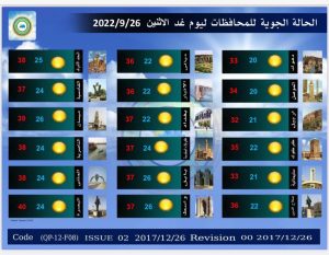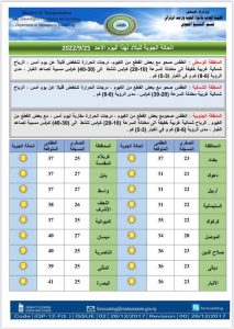 أعلنت هيئة الأنواء الجوية، اليوم الأحد، عن حالة الطقس في البلاد للأيام المقبلة، فيما توقعت تصاعداً للغبار وارتفاعاً في درجات الحرارة الأسبوع الحالي.