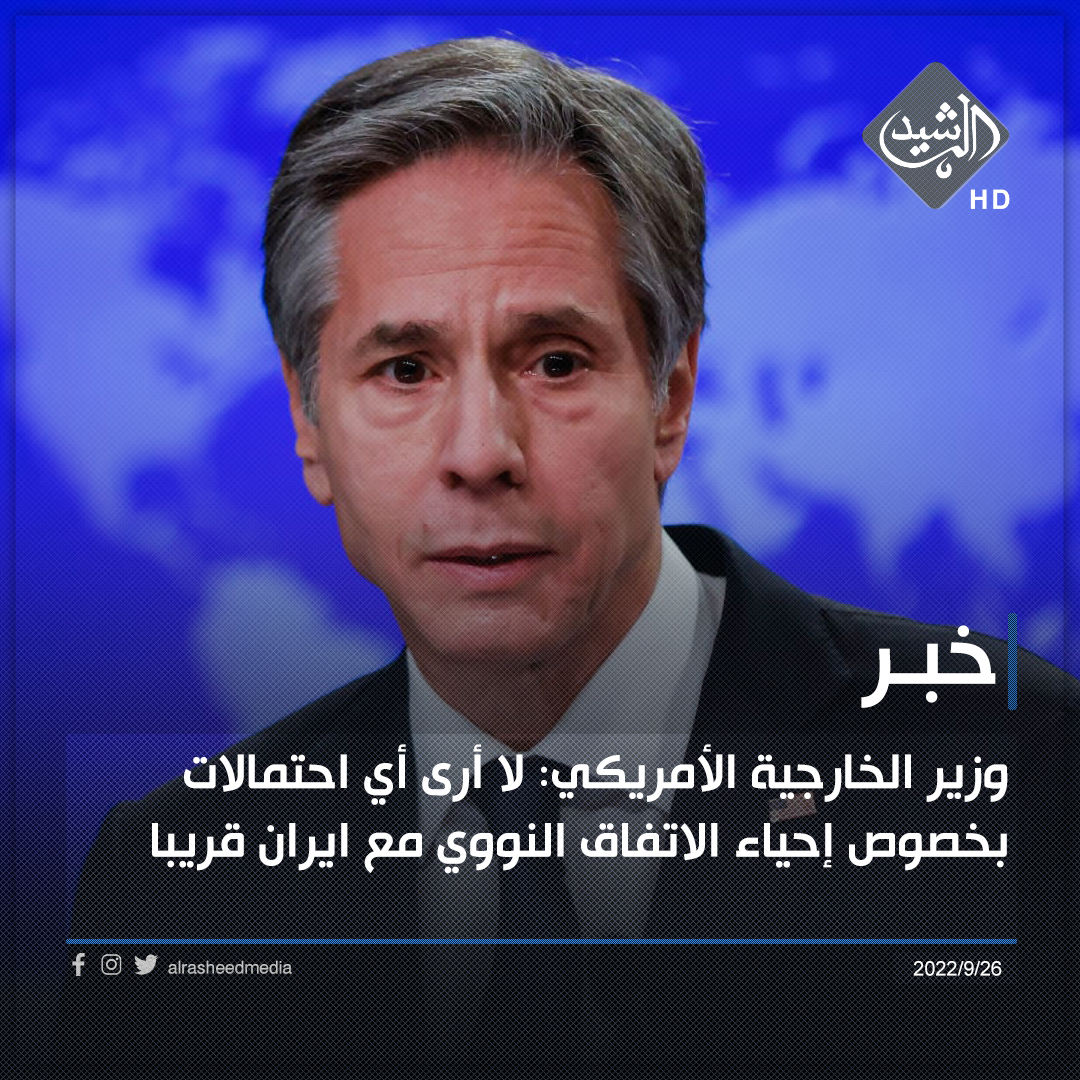 وقال بلينكن في مقابة تلفزيونية: ” لا أرى أي احتمالات بخصوص إحياء الاتفاق النووي مع إيران على المدى القريب”.