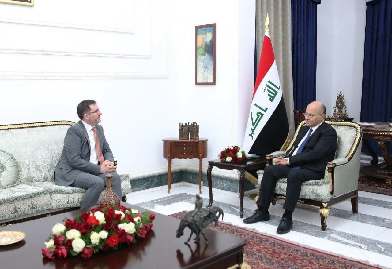 بحث رئيس الجمهورية برهم صالح مع السفير البريطاني لدى العراق مارك برايسون ريتشاردسون، اليوم الاثنين، التعاون المشترك في المجال الاقتصادي ومكافحة الارهاب.