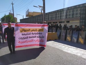 وأشار الى”احتكاك بين قوات حفظ النظام والمتظاهرين لمحاولة منع نصب خيم الاعتصام أمام مقر رئيس ديوان الوقف الشيعي وسط بغداد”.