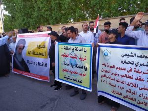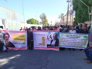 وقال مصدر أمني في حديث للرشيد، أن” العشرات من منتسبي مزارات العراق يتظاهرون في بغداد أمام مقر رئيس ديوان الوقف الشيعي للمطالبة بالتثبيت على الملاك الدائم وإقالة الأمين العام للمزارات وسط انتشار امني لقوات حفظ القانون”.