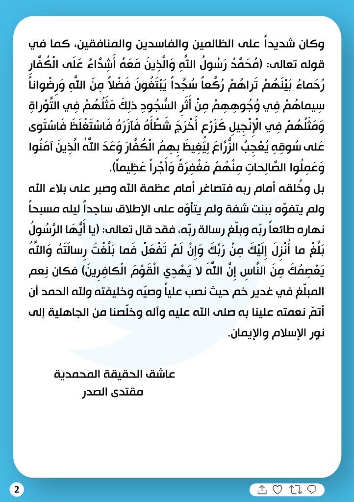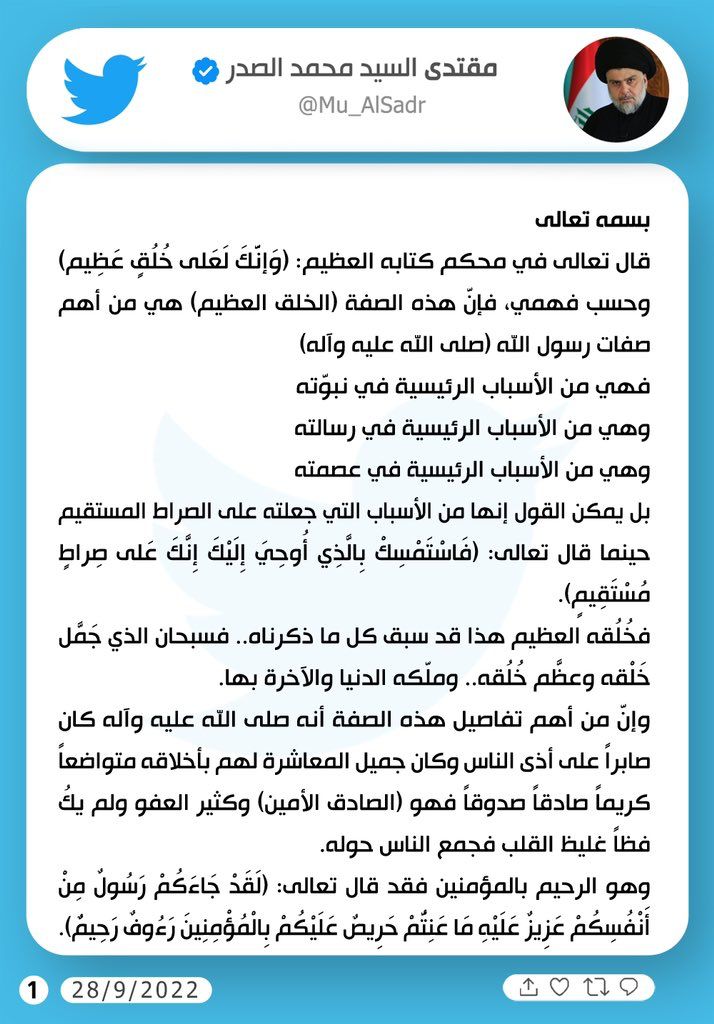 سياسةتغريدة جديدة للسيد الصدر قبل 3 سنوات 4 مشاهدات شارك السيد مقتدى الصدر الوسومالصدرقد يهمك أيضا أقتصاد الدولار يغلق على انخفاض في الاسواق المحلية قبل 47 دقيقة 6 مشاهدات أقتصاد وزير التجارة: أكثر من 4 ملايين اسم وهمي ومتكرر ومسافر بملف البطاقة التموينية قبل ساعة واحدة 7 مشاهدات محليات اخماد حريق بناية تجارية في منطقة الاعظمية قبل ساعتين 8 مشاهدات محليات اندلاع حريق داخل بناية متخذة كقاعة للاعراس في ساحة عنتر بمنطقة الاعظمية قبل 3 ساعات 14 مشاهدات ثقافة وفن بعد مصرعها بحريق في منزلها.. مساعدة الفنانة "نيفين مندور" تزعم مقتلها وتطالب بالتحقيق قبل 4 ساعات 10 مشاهدات
