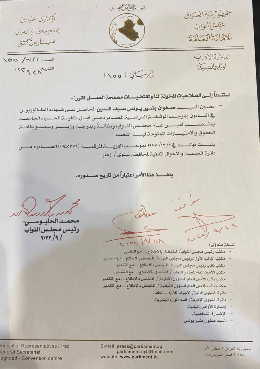 سياسةبالوثيقة.. الحلبوسي يصدر أمرا بتعيين صفوان بشير بمنصب أمين عام مجلس النواب وكالة قبل 3 سنوات 4 مشاهدات شارك الحلبوسي الوسومالحلبوسيمجلس النواب العراقيقد يهمك أيضا سياسة المبعوث الأميركي إلى سوريا: فشلنا في العراق فتح المجال أمام إيران لملء الفراغ قبل 21 دقيقة 2 مشاهدات أمن مقتل شاب برصاصة أطلقها منتسب أمني بالخطأ خلال "مشاجرة اعتيادية" في أبي غريب غربي بغداد قبل 9 ساعات 9 مشاهدات رياضة مدرب الأرجنتين معلقاً على قرعة المونديال: منتخب الجزائر قوي والأردن مجهول بالنسبة لي قبل 9 ساعات 20 مشاهدات محليات العراق يستقبل موجة أمطار غزيرة.. الأنواء تحذر من سيول وفيضانات في المناطق غير المخدومة اعتباراً من الغد قبل 10 ساعات 19 مشاهدات محليات المالية تنفي استقبال نائبة للتفاوض مع وزيرتها بشأن مستحقات المقاولين قبل 10 ساعات 10 مشاهدات
