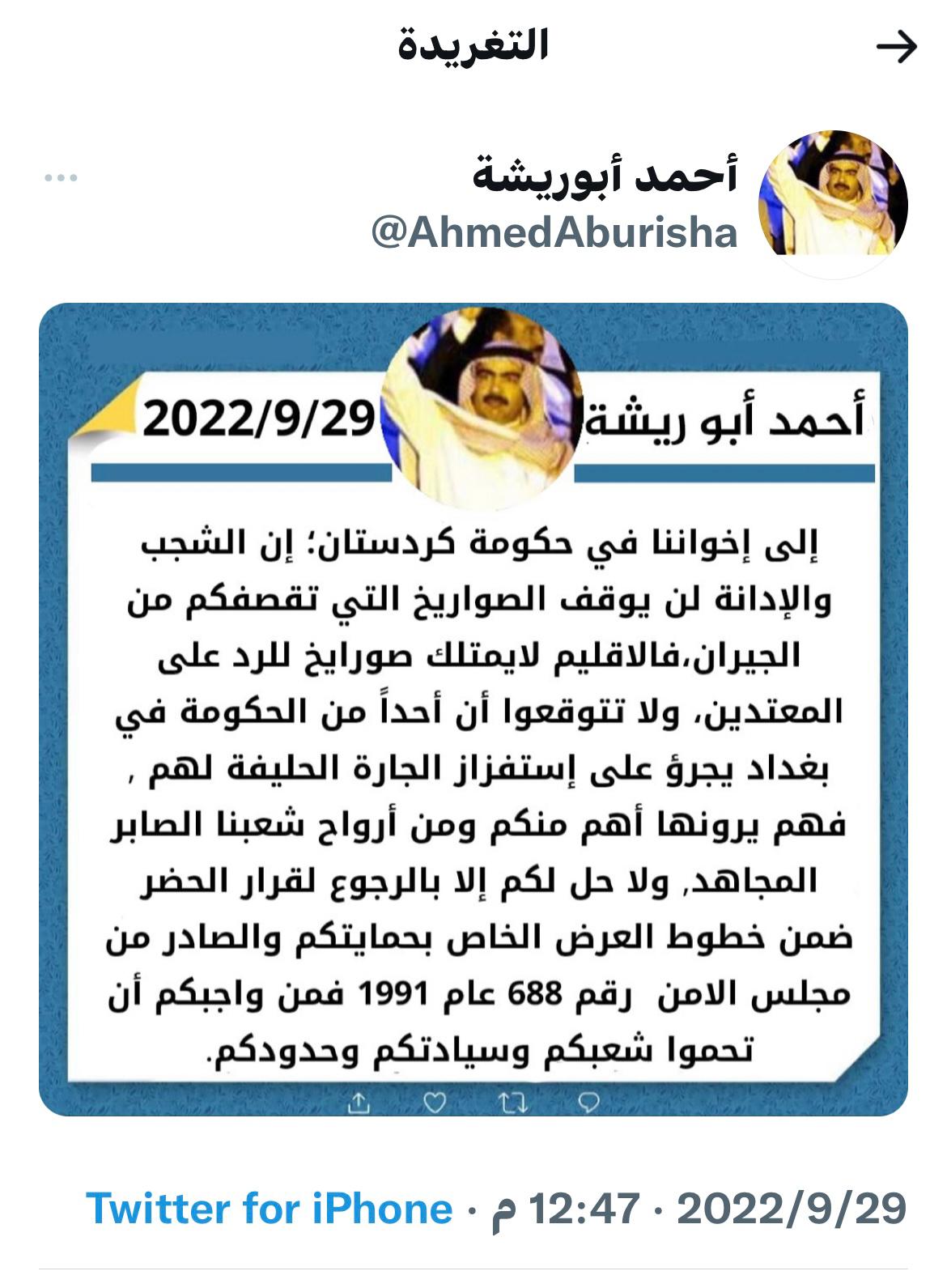 سياسةالشيخ أبو ريشة لإقليم كردستان: لا أحد من الحكومة في بغداد يجرؤ على استفزاز الجارة الحليفة لهم قبل 3 سنوات 2 مشاهدات شارك الوسوماحمد ابو ريشةقد يهمك أيضا عربي ودولي الولايات المتحدة تدفع 3 آلاف دولار لكل مهاجر غير شرعي مقابل مغادرة اراضيها قبل 8 ساعات 10 مشاهدات الحكم الرابع الاهلي يضرب الشرطة بقوة ويزيد من جراحاتهم آسيوياً.. قبل 8 ساعات 11 مشاهدات رياضة الشرطة يخسر أمام الأهلي السعودي بخماسية في دوري أبطال آسيا قبل 8 ساعات 35 مشاهدات سياسة الإعمار والتنمية يقدم وثيقة للإطار التنسيقي تتضمن 5 معايير لاختيار مرشح رئاسة الحكومة قبل 9 ساعات 14 مشاهدات سياسة الإطار التنسيقي يؤكد موقفه الداعم لحصر السلاح بيد الدولة قبل 9 ساعات 10 مشاهدات