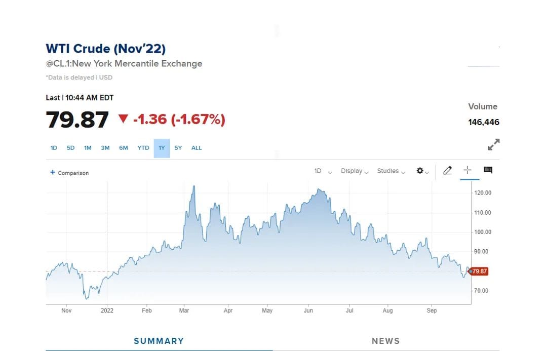 قراءة: العقود الآجلة للخام الأميركي تهبط دون مستويات 80 دولاراً للبرميل